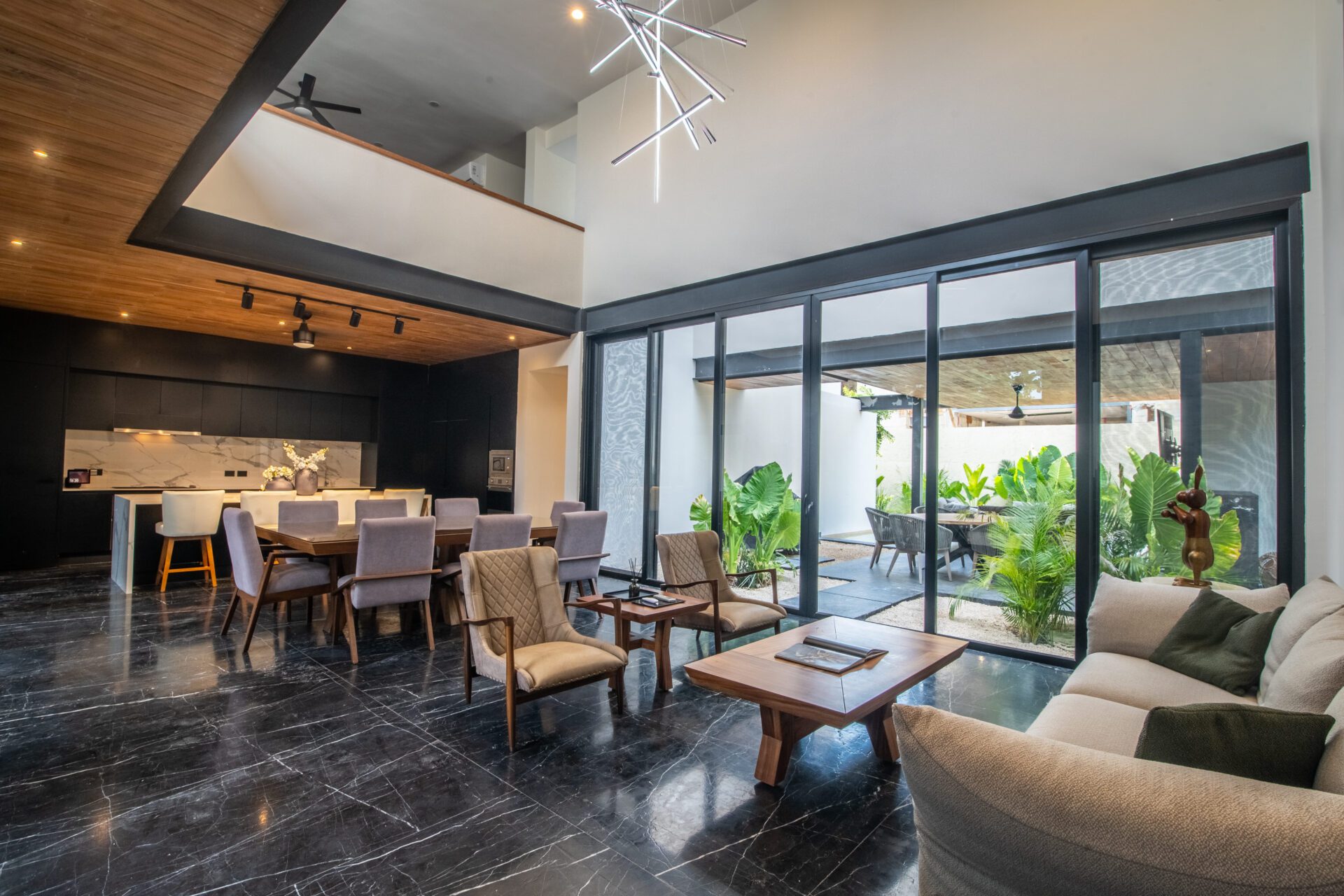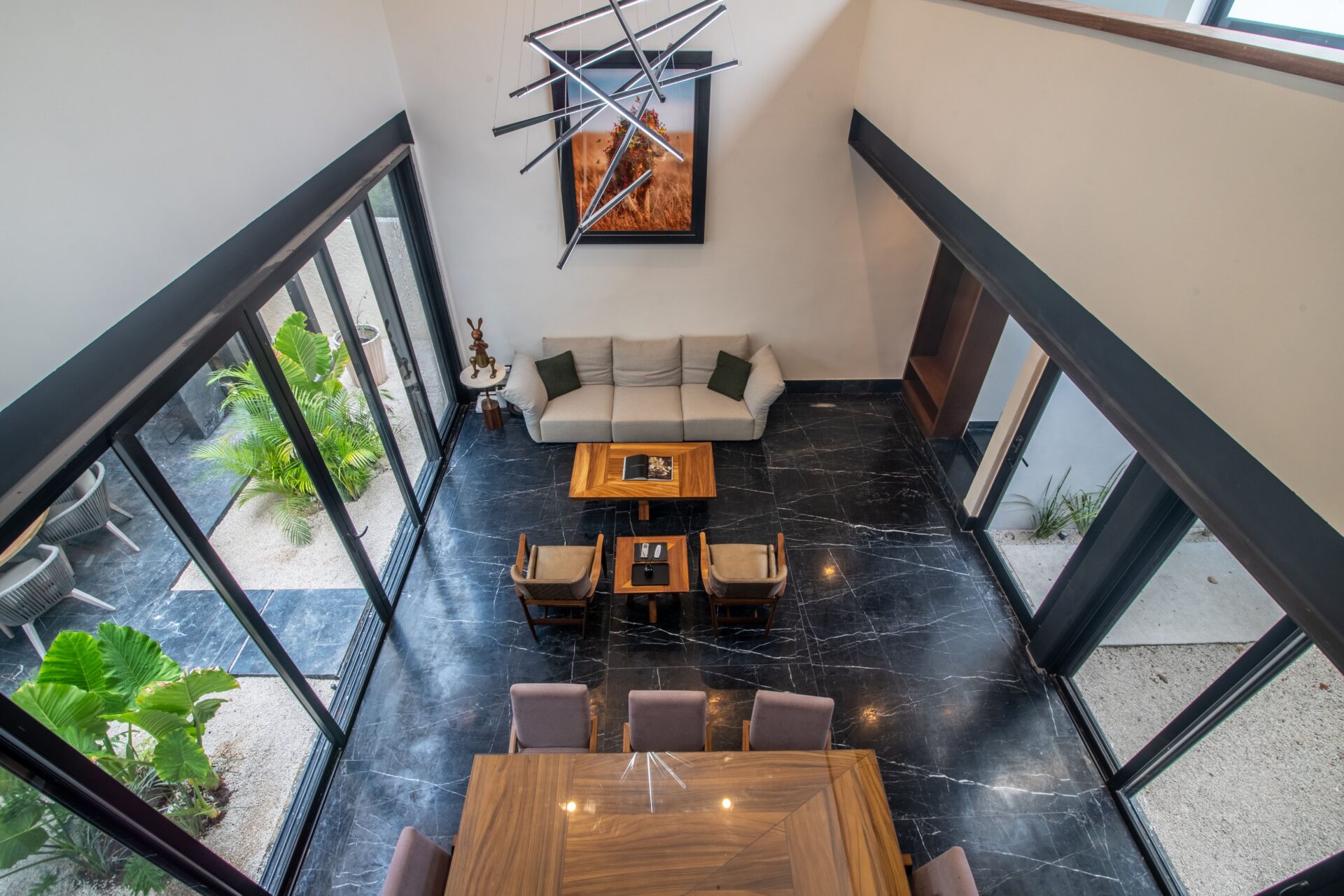 🛋️ Living and dining rooms with high ceilings and excellent lighting
