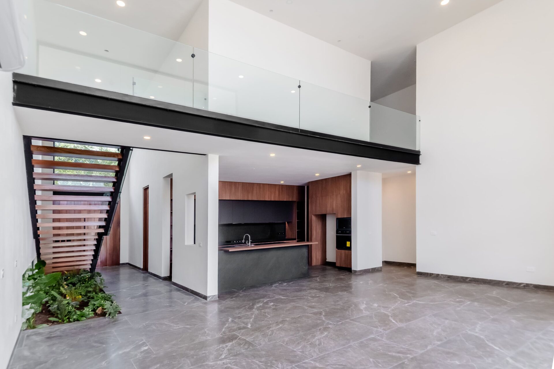 Al entrar, te recibe una sala y comedor a doble altura que llenan la casa de luz natural y se conectan con una terraza espectacular y una piscina con acabado chukum, perfecta para disfrutar cada momento en familia.