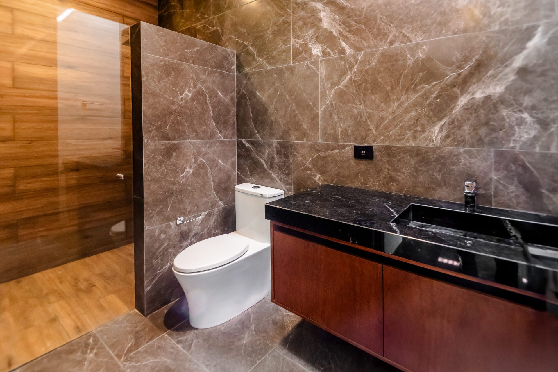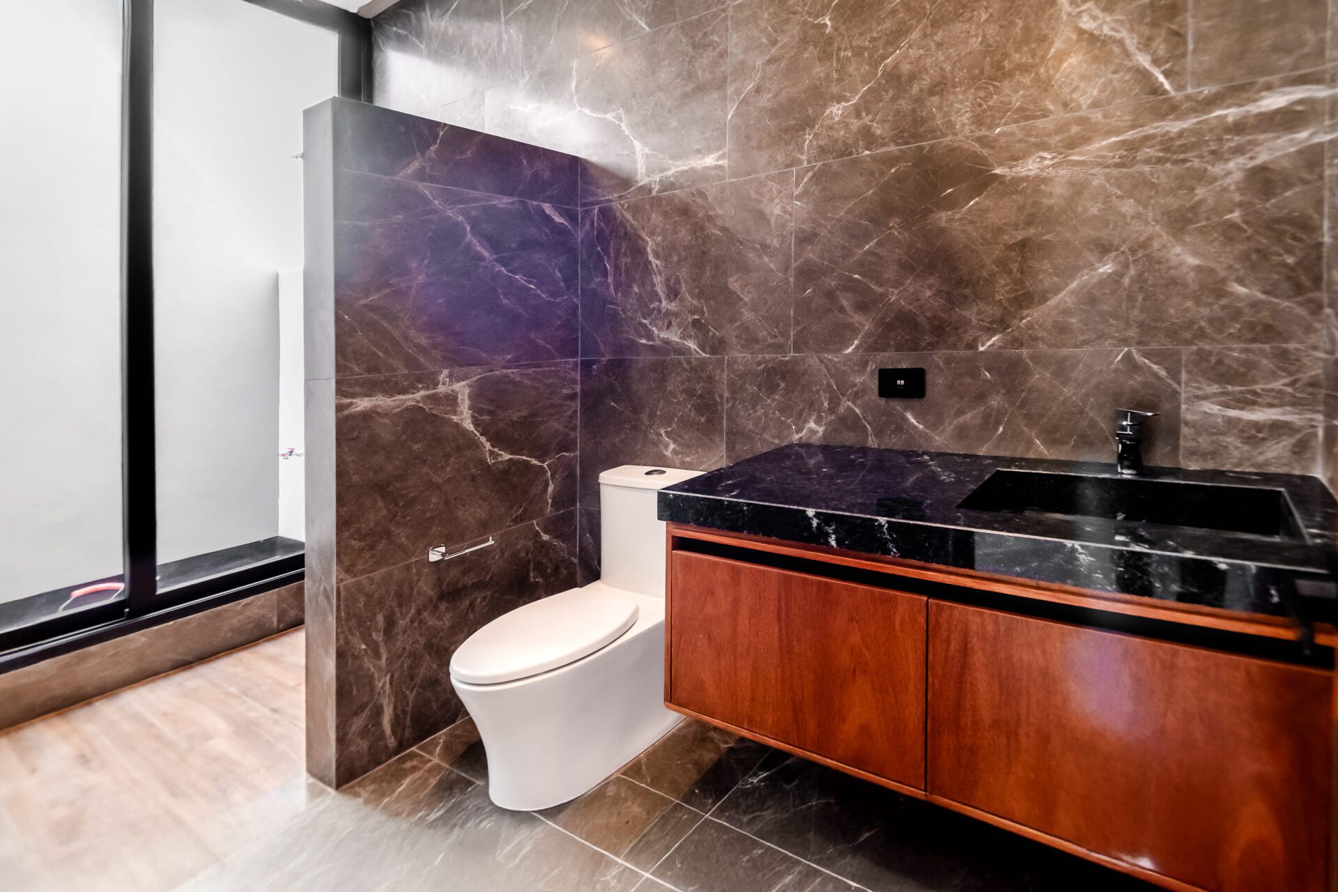 Cada detalle ha sido cuidadosamente pensado: pisos de porcelanato, maderas finas, granito natural en cocina y baños, celosías decorativas y cristales templados que resaltan la elegancia en cada espacio.